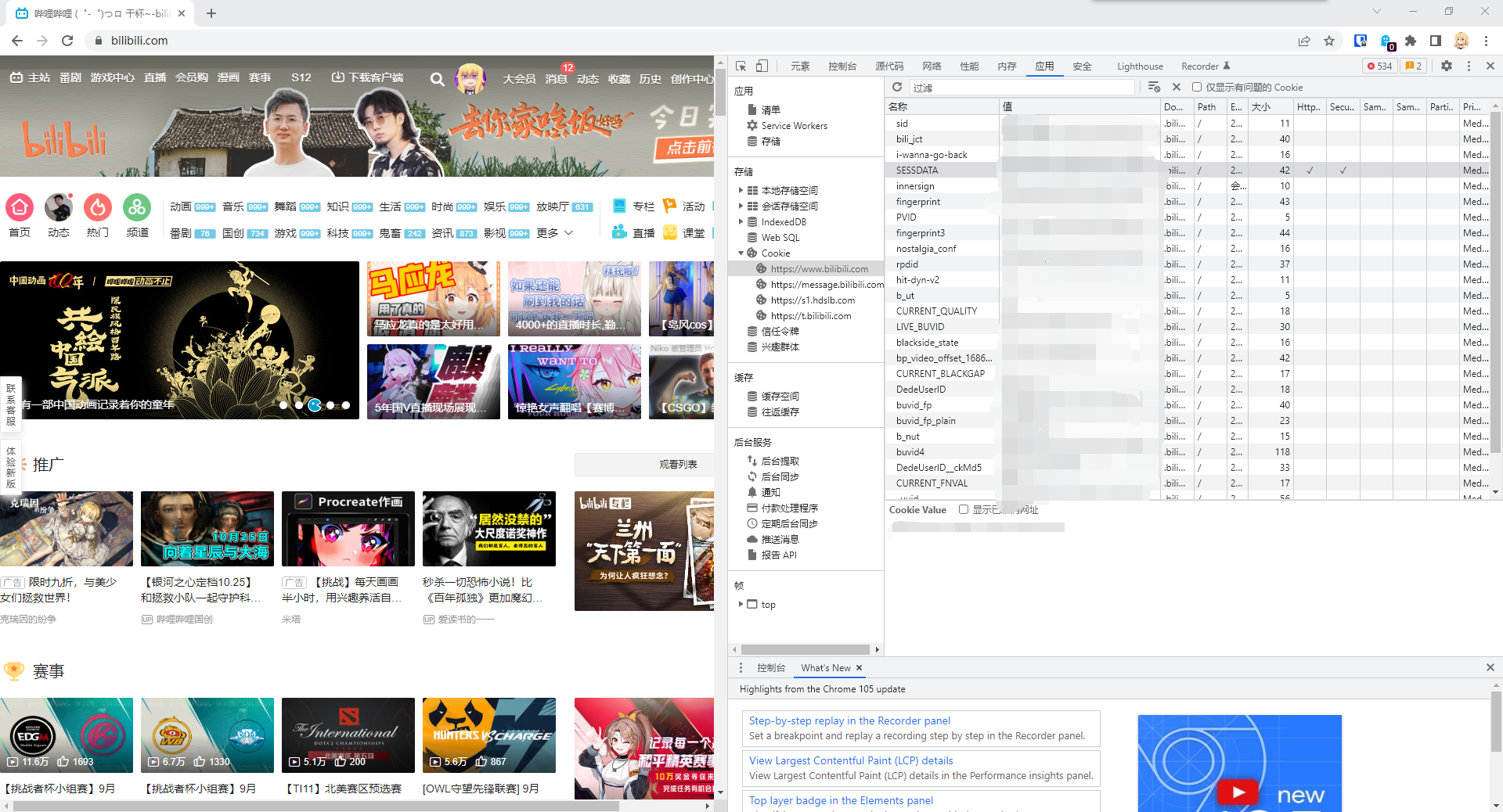 5、点击 应用(Application)->Cookie->https://www.bilibili.com (二级域名为bilibili都即可)。